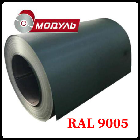 Рулони оцинковані 0,5 мм із глянсовим полімерним покриттям "Модуль Україна" RAL 9005 кількість